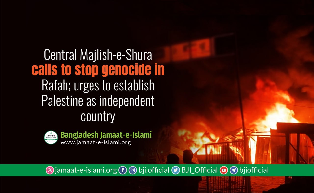 Central Majlish-e-Shura calls to stop genocide in Rafah; urges to establish Palestine as independent country