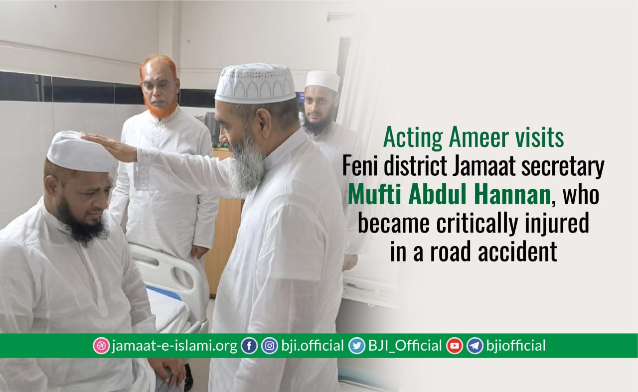 Acting Ameer visits Feni district Jamaat secretary Mufti Abdul Hannan, who became critically injured in a road accident