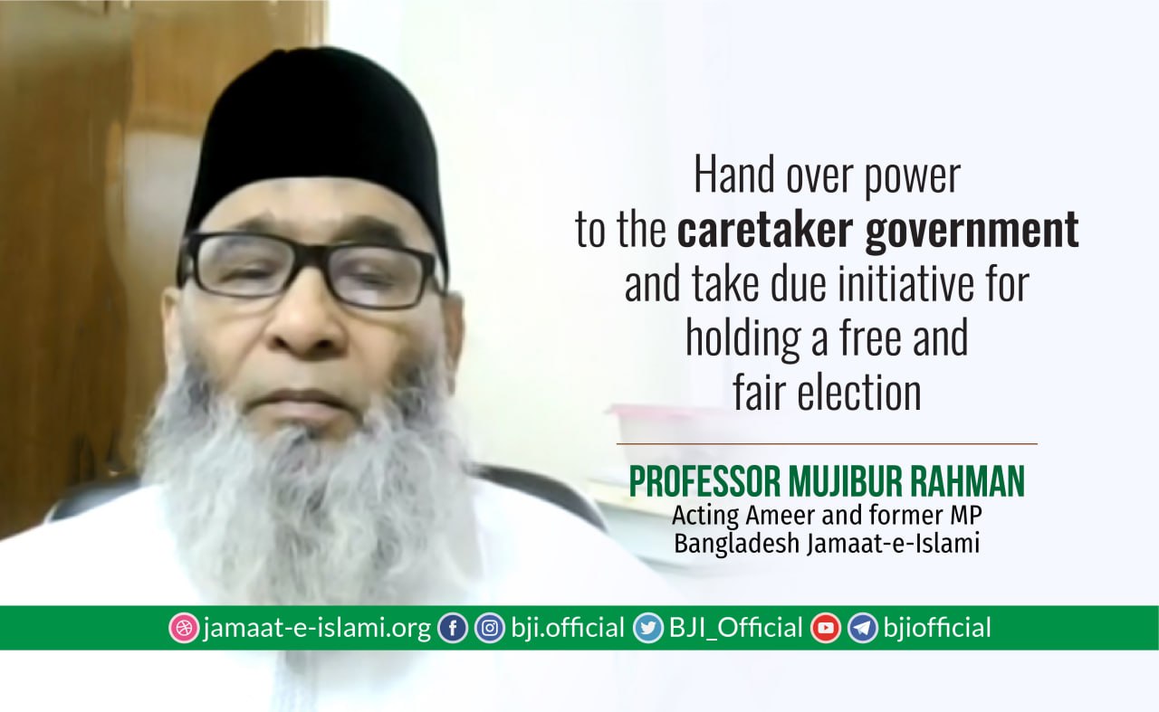 Hand over power to the caretaker government and take due initiative for holding a free and fair election