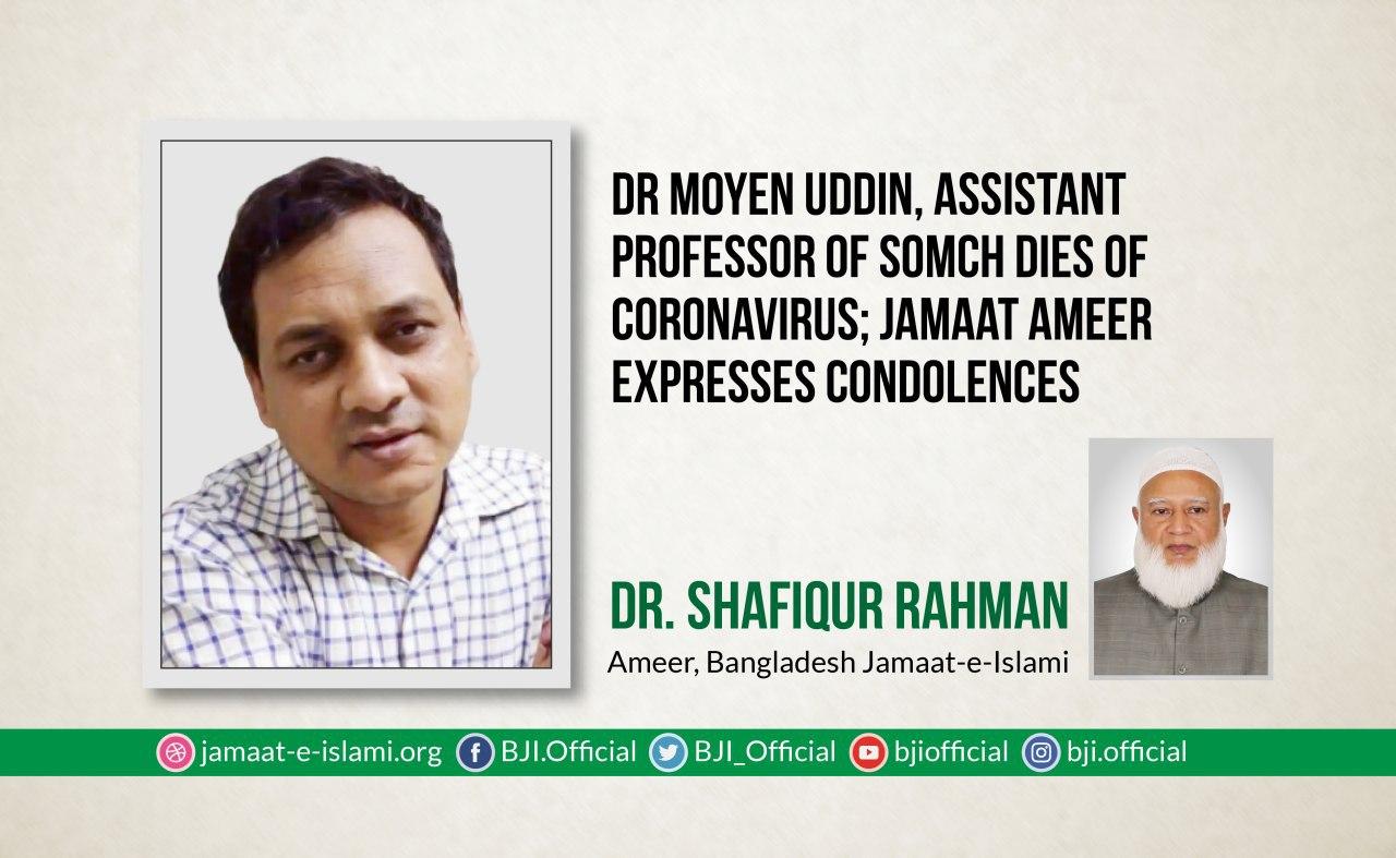 Dr Moyen Uddin, Assistant professor of SOMCH dies of coronavirus; Jamaat Ameer expresses condolences