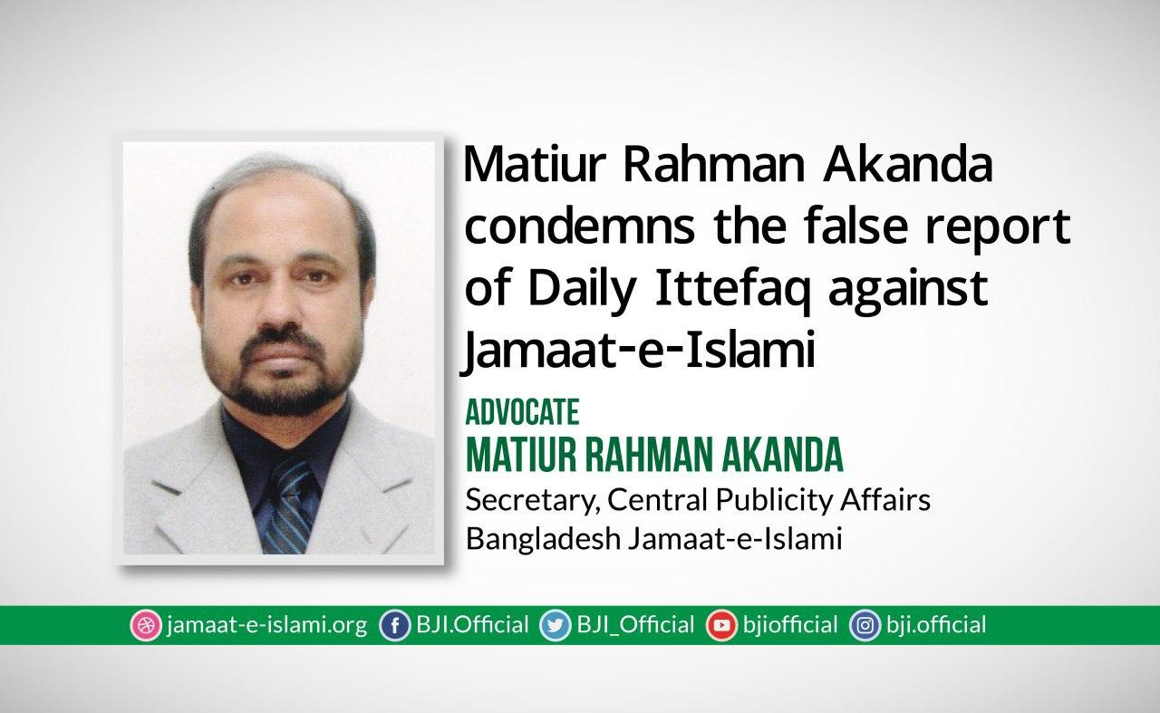 Matiur Rahman Akanda condemns the false report of Daily Ittefaq against Jamaat-e-Islami