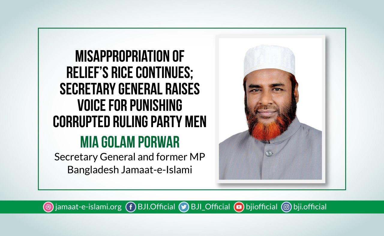 Misappropriation of relief’s rice continues; Secretary General raises voice for punishing corrupted ruling party men