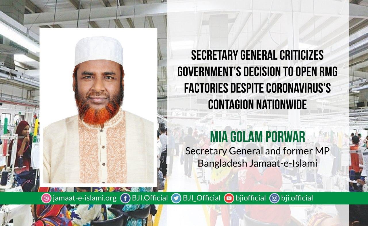 Secretary General criticizes government’s decision to open RMG factories despite coronavirus’s contagion nationwide