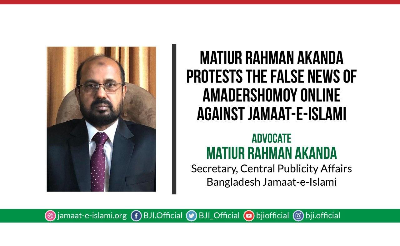 Matiur Rahman Akanda protests the false news of Amadershomoy online against Jamaat-e-Islami