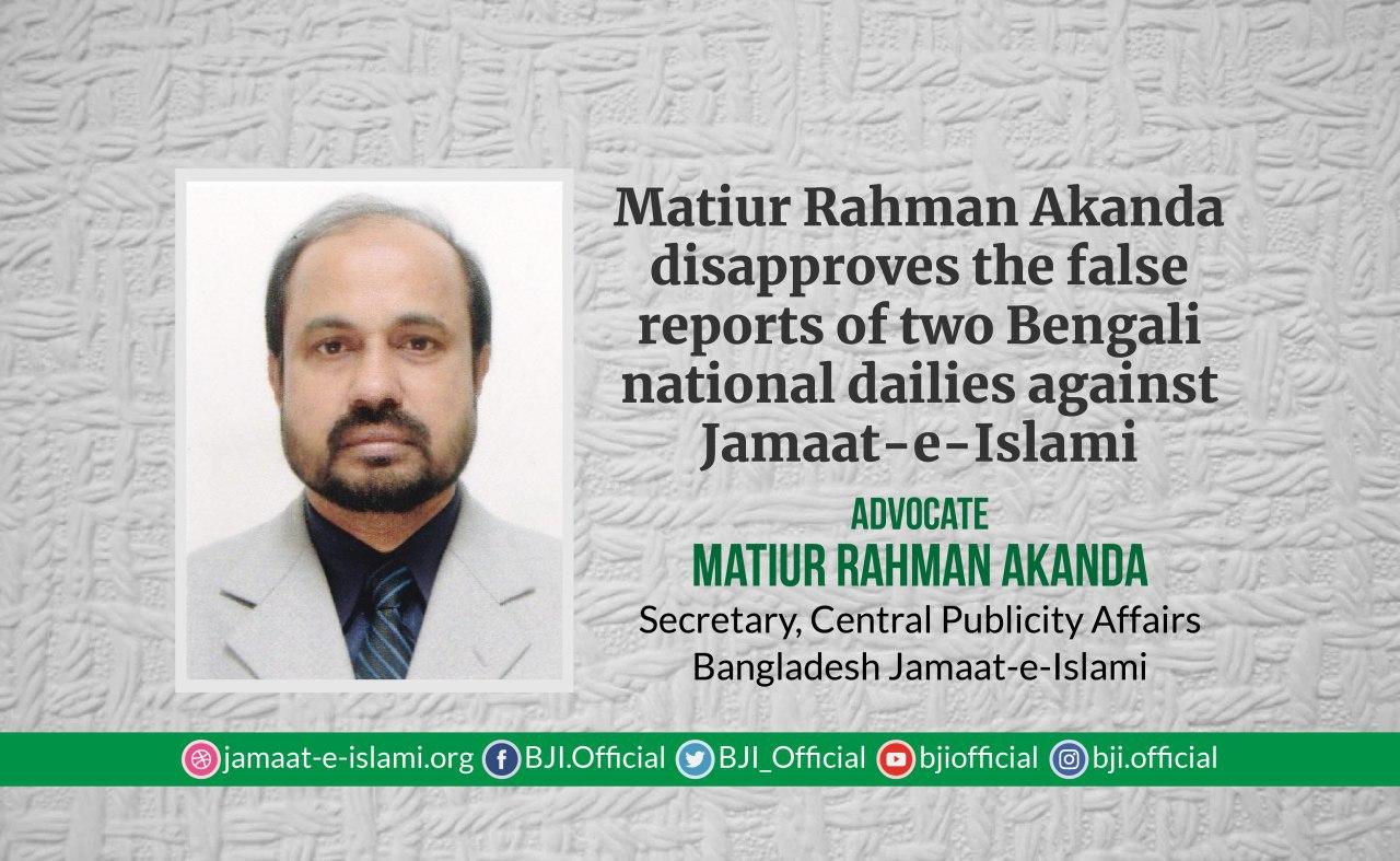 Matiur Rahman Akanda disapproves the false reports of two Bengali national dailies against Jamaat-e-Islami