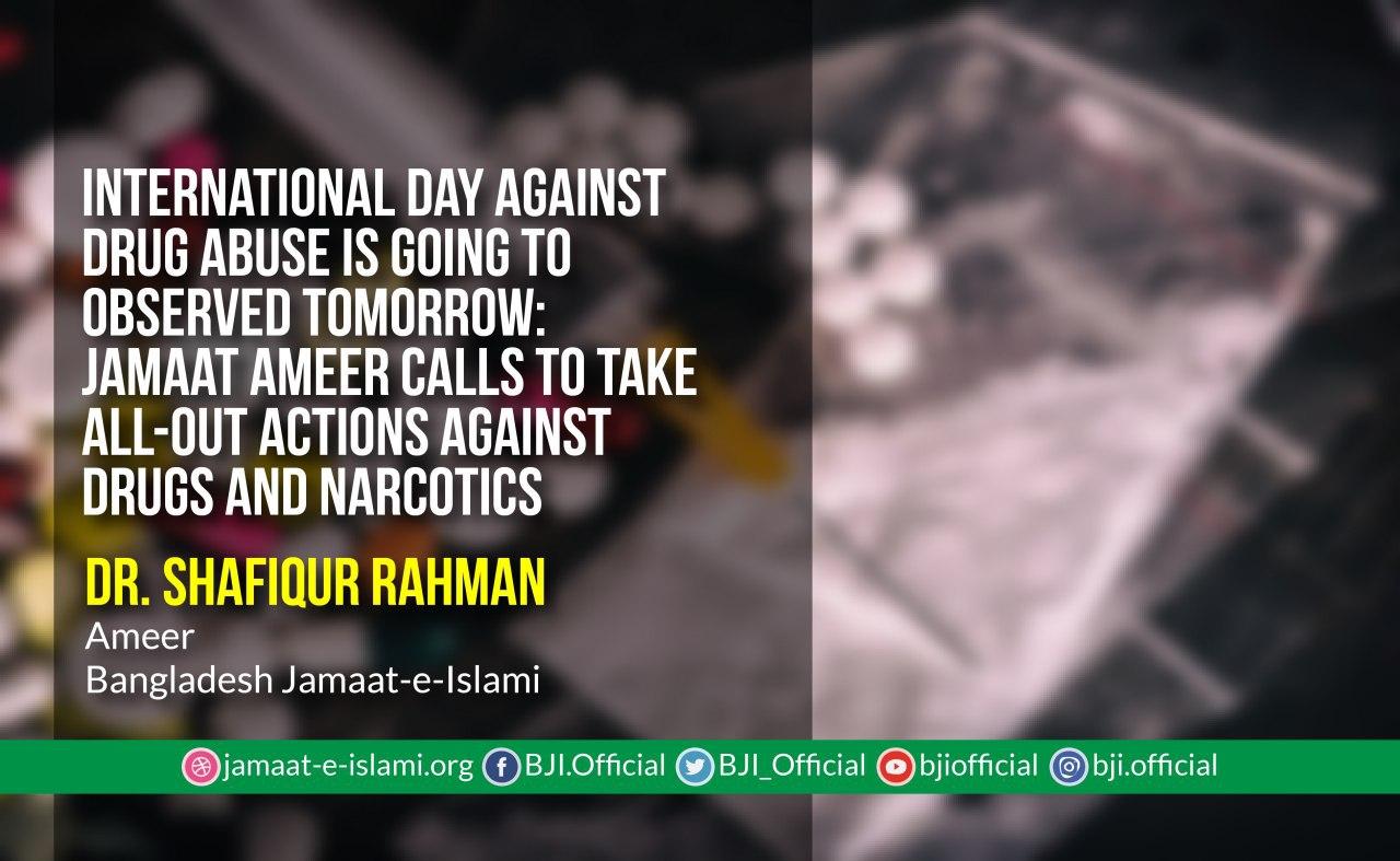 International Day against Drug Abuse is going to observed tomorrow: Jamaat Ameer calls to take all-out actions against drugs and narcotics