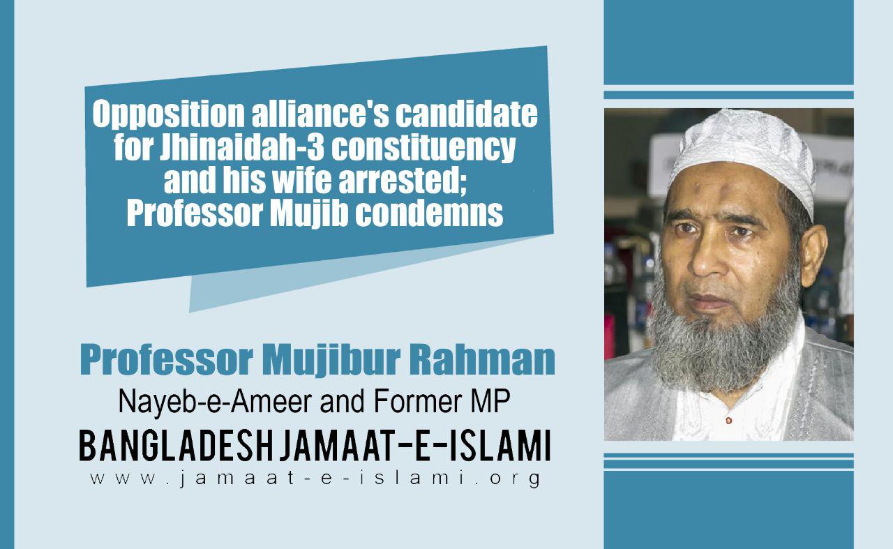 Opposition alliance’s candidate for Jhinaidah-3 constituency and his wife arrested; Professor Mujib condemns