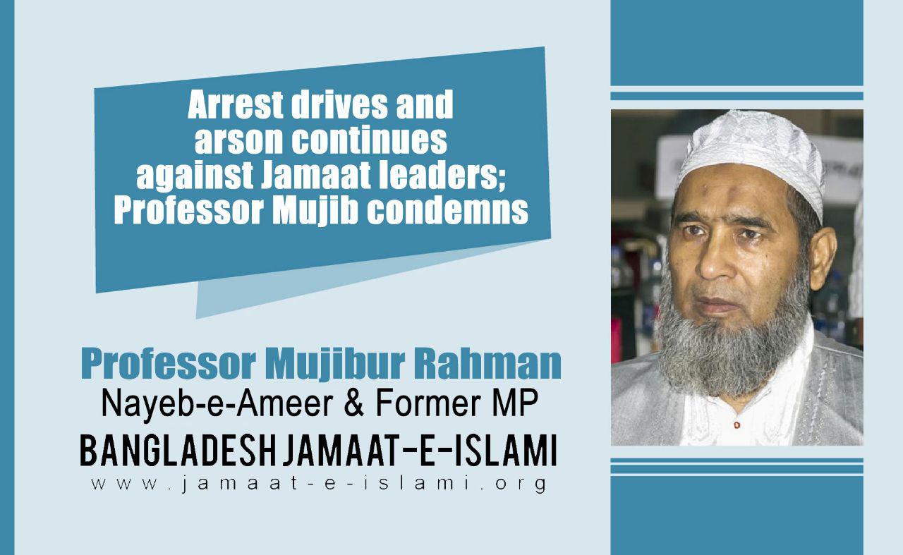 Arrest drives and arson continues against Jamaat leaders; Professor Mujib condemns