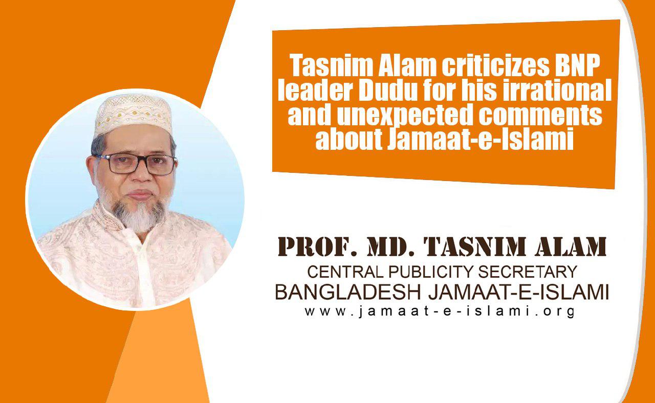 Tasnim Alam criticizes BNP leader Dudu for his irrational and unexpected comments about Jamaat-e-Islami