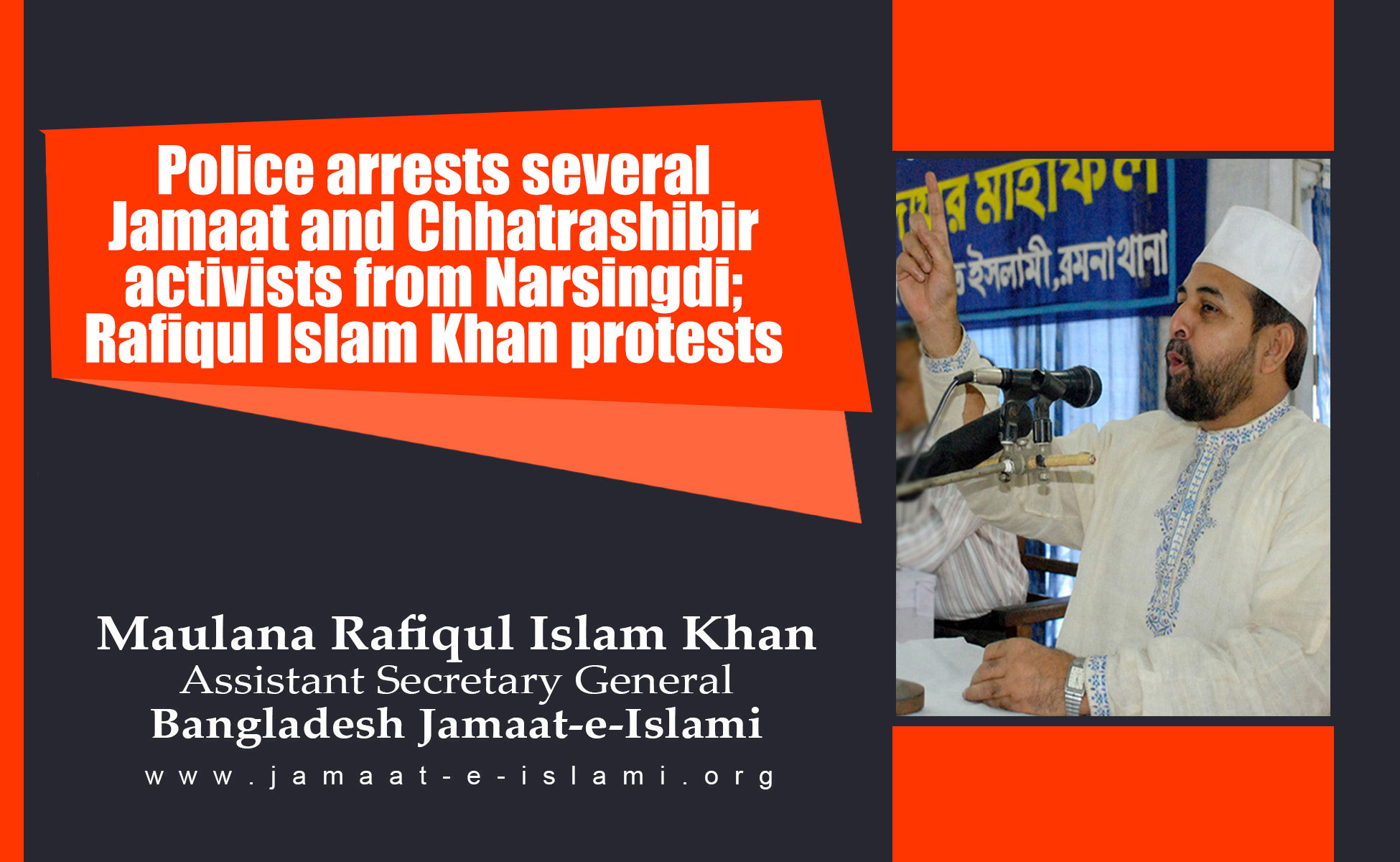 Police arrests several Jamaat and Chhatrashibir activists from Narsingdi; Rafiqul Islam Khan protests