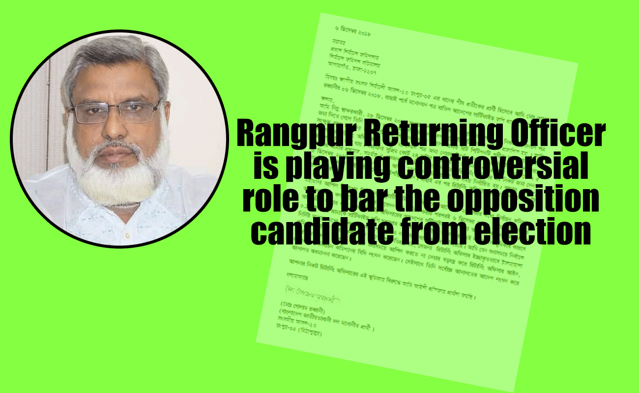 Rangpur Returning Officer is playing controversial role to bar the opposition candidate from election