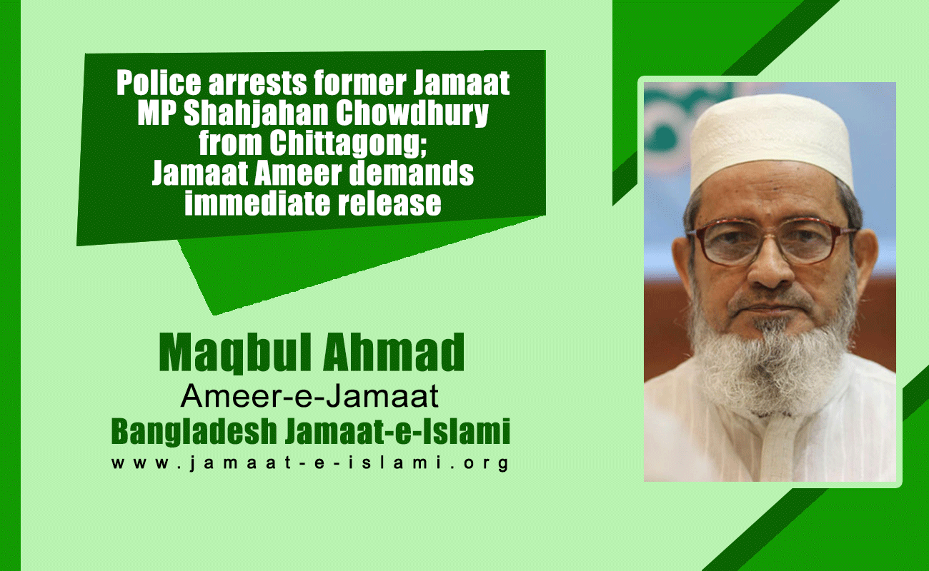 Police arrests former Jamaat MP Shahjahan Chowdhury from Chittagong; Jamaat Ameer demands immediate release