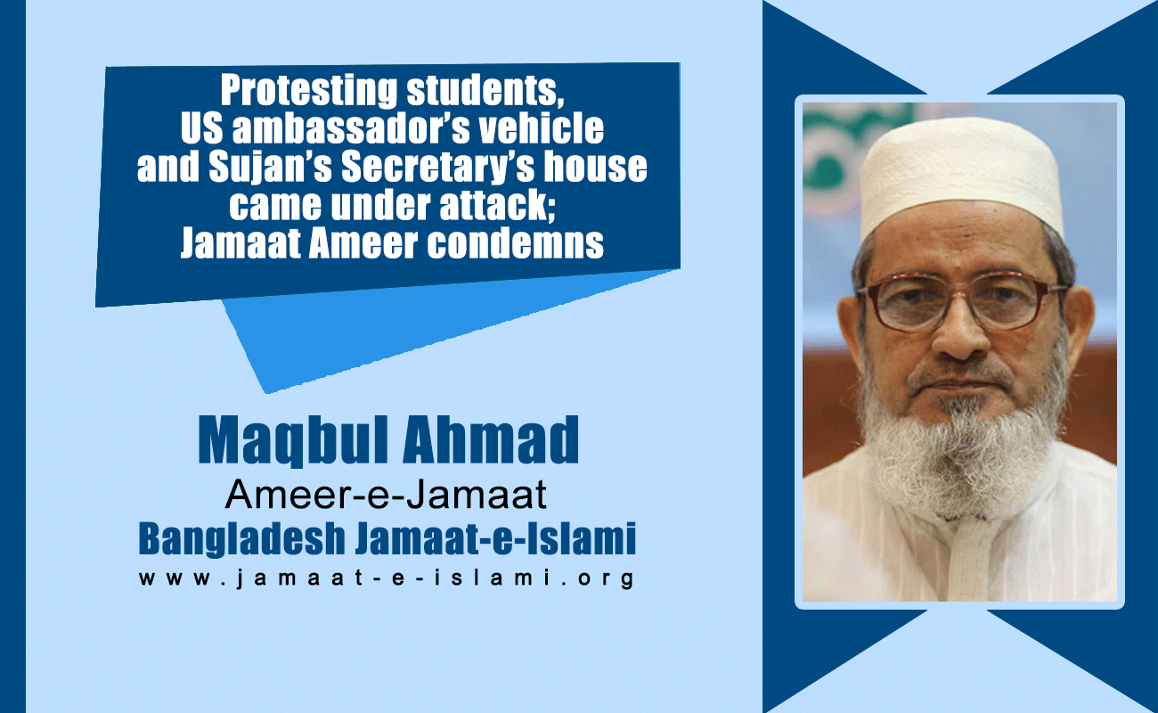 Protesting students, US ambassador’s vehicle and Sujan’s Secretary’s house came under attack; Jamaat Ameer condemns