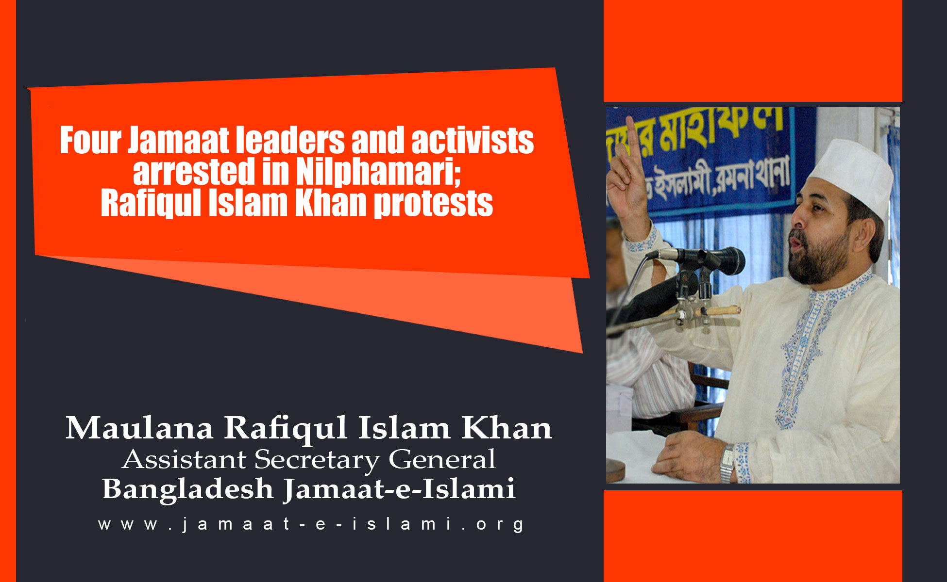 Four Jamaat leaders and activists arrested in Nilphamari; Rafiqul Islam Khan protests