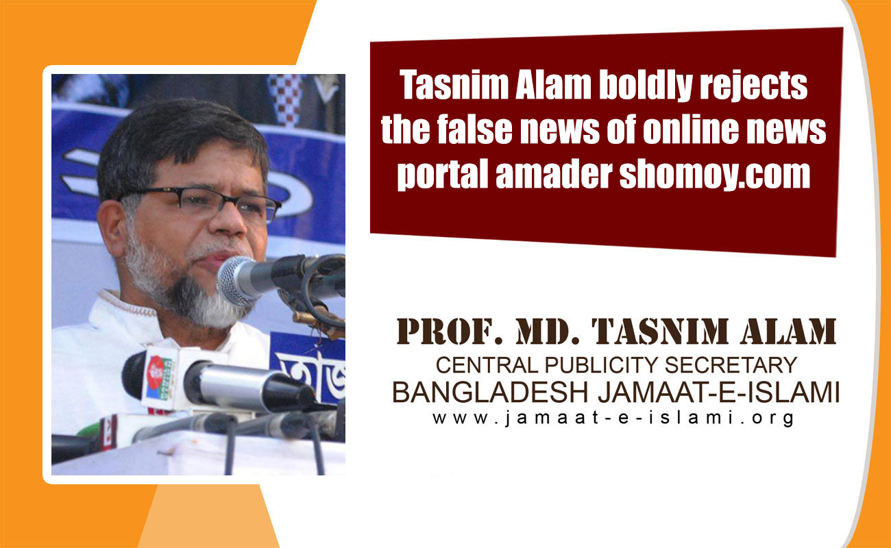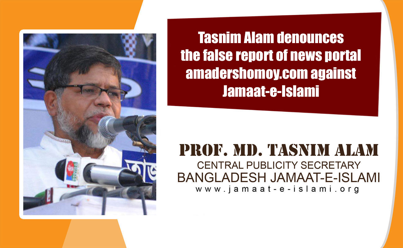 Tasnim Alam denounces the false report of news portal amadershomoy.com against Jamaat-e-Islami