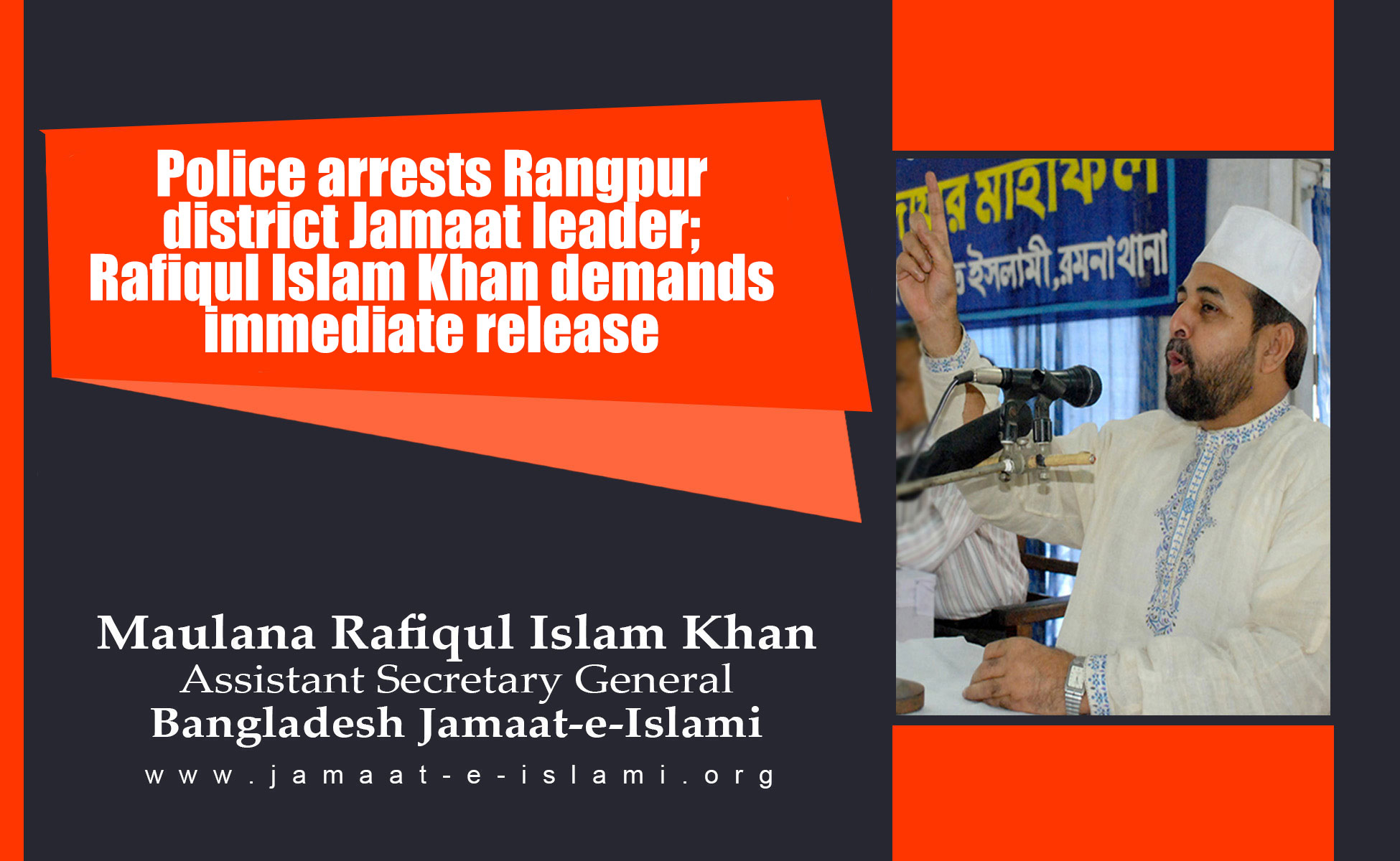 Police arrests Rangpur district Jamaat leader; Rafiqul Islam Khan demands immediate release