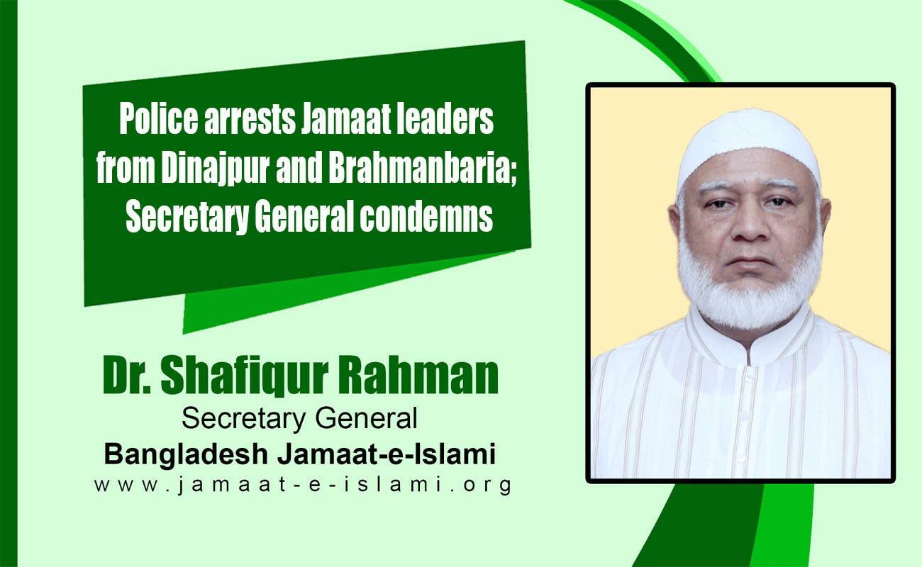 Police arrests Jamaat leaders from Dinajpur and Brahmanbaria; Secretary General condemns