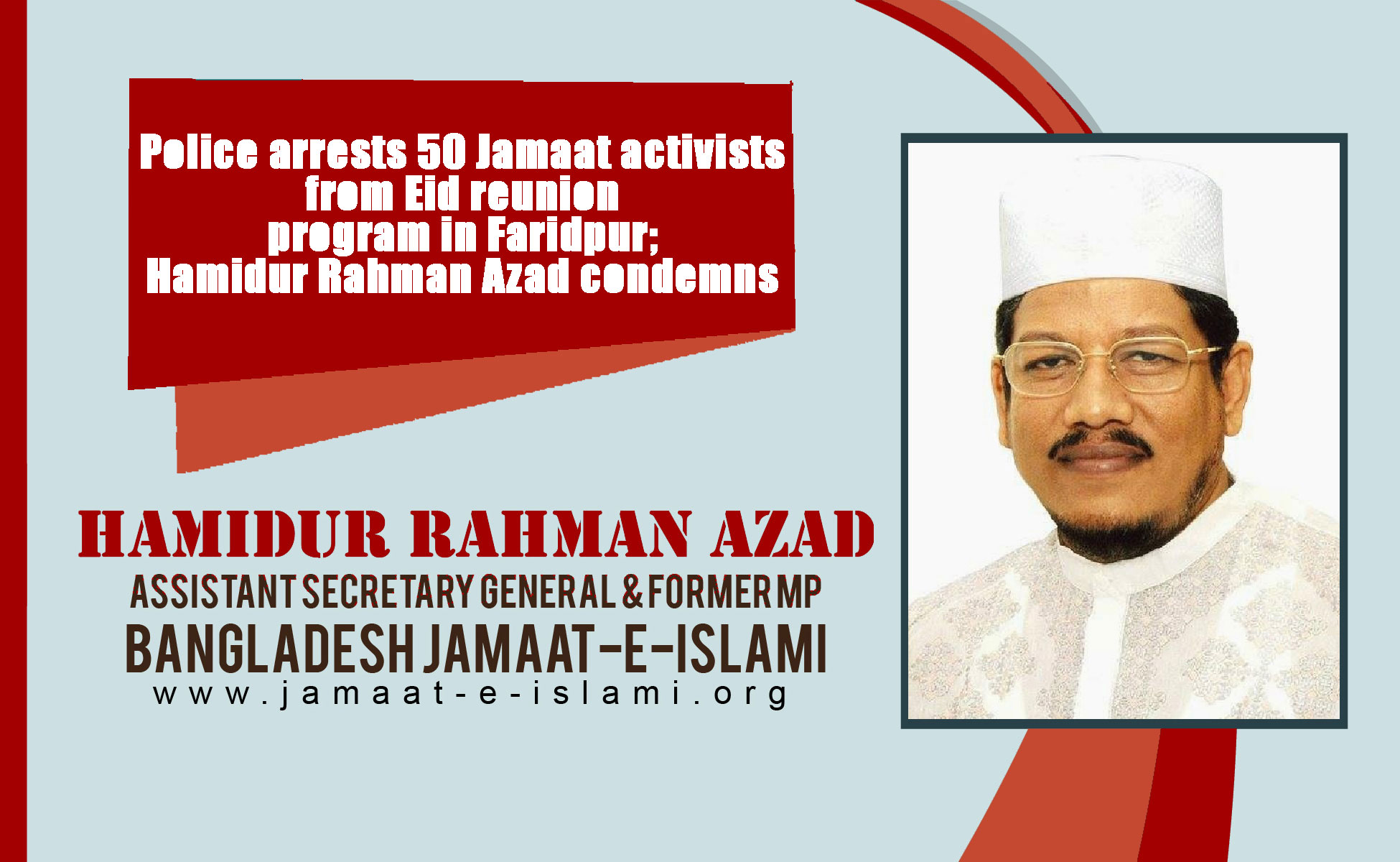 Police arrests 50 Jamaat activists from Eid reunion program in Faridpur; Hamidur Rahman Azad condemns