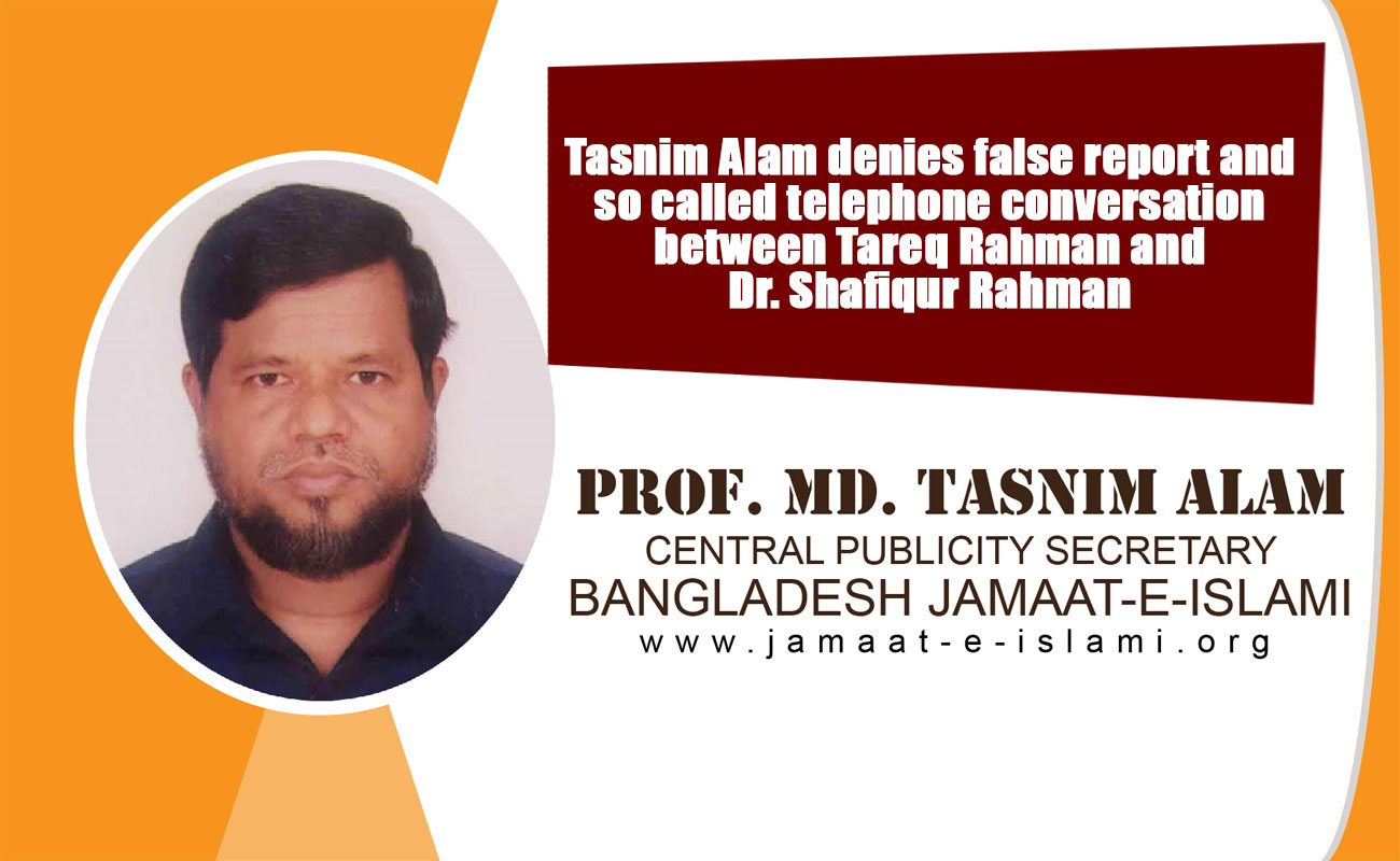 Tasnim Alam denies false report and so called telephone conversation between Tareq Rahman and Dr. Shafiqur Rahman