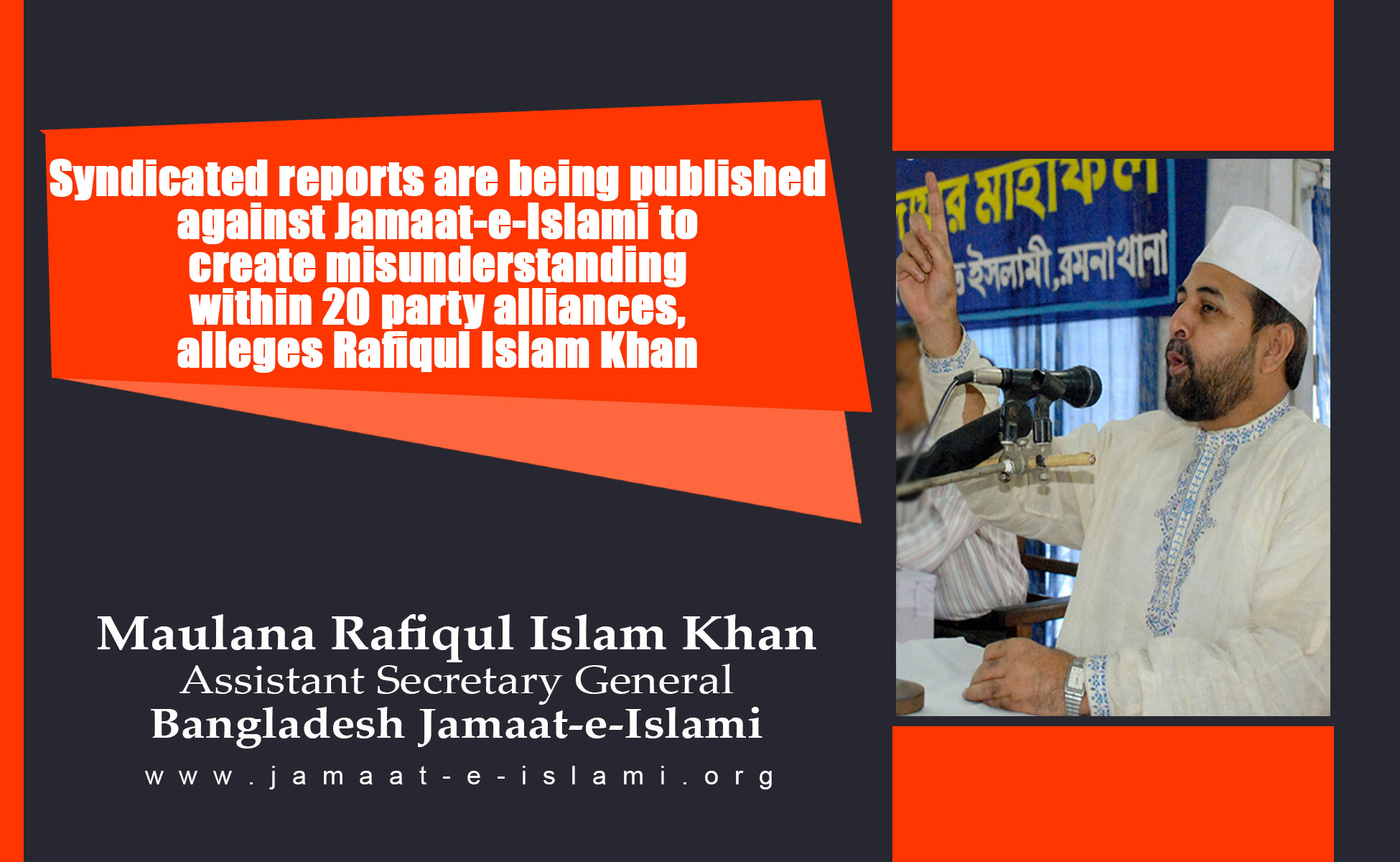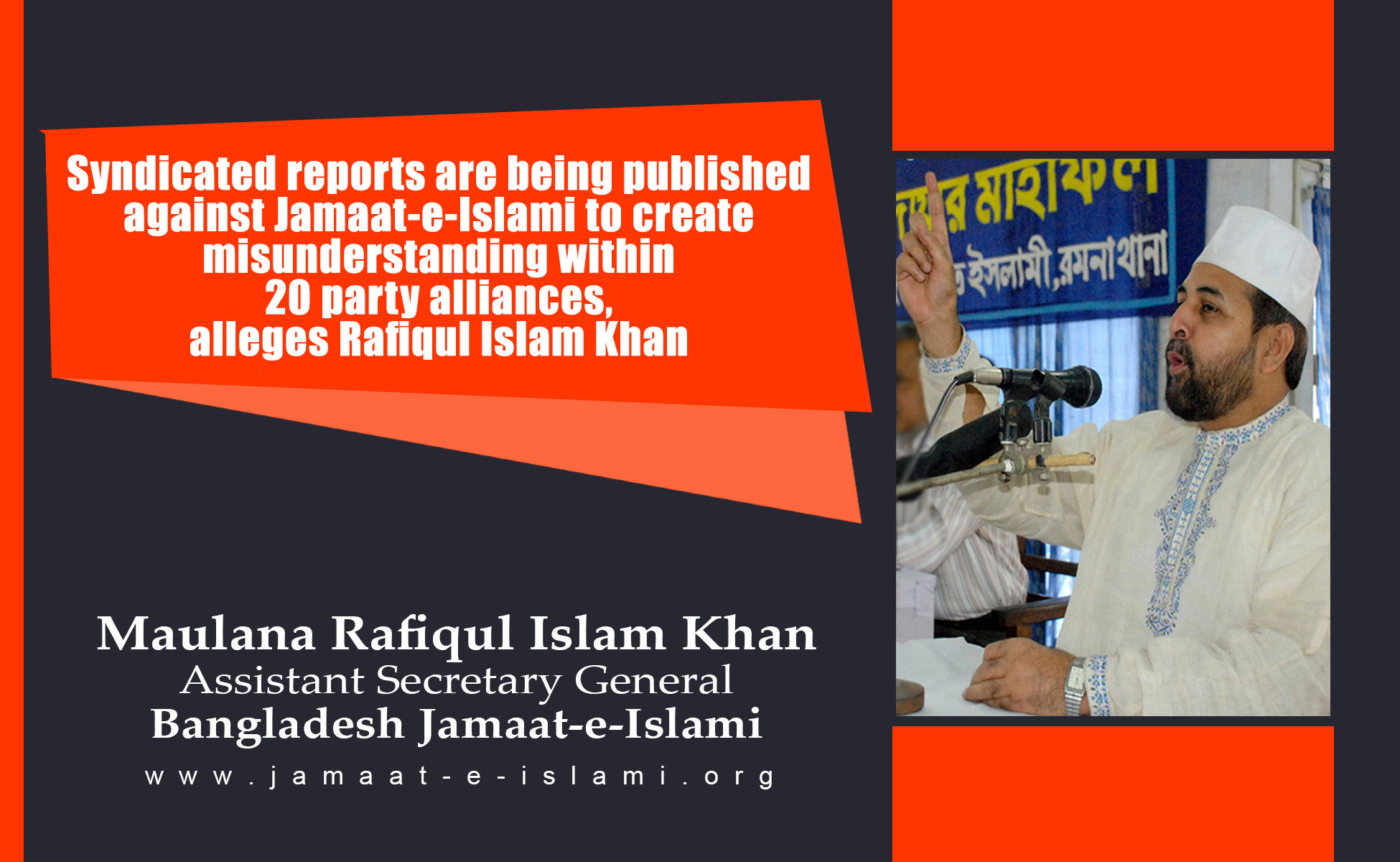 Syndicated reports are being published against Jamaat-e-Islami to create misunderstanding within 20 party alliances, alleges Rafiqul Islam Khan