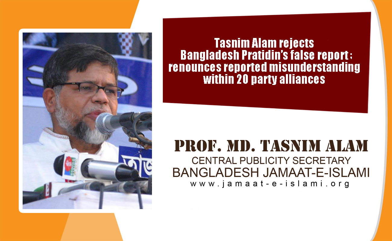 Tasnim Alam again dismisses false reports of several media against Jamaat-e-Islami; 20 party alliances is still united, he affirms