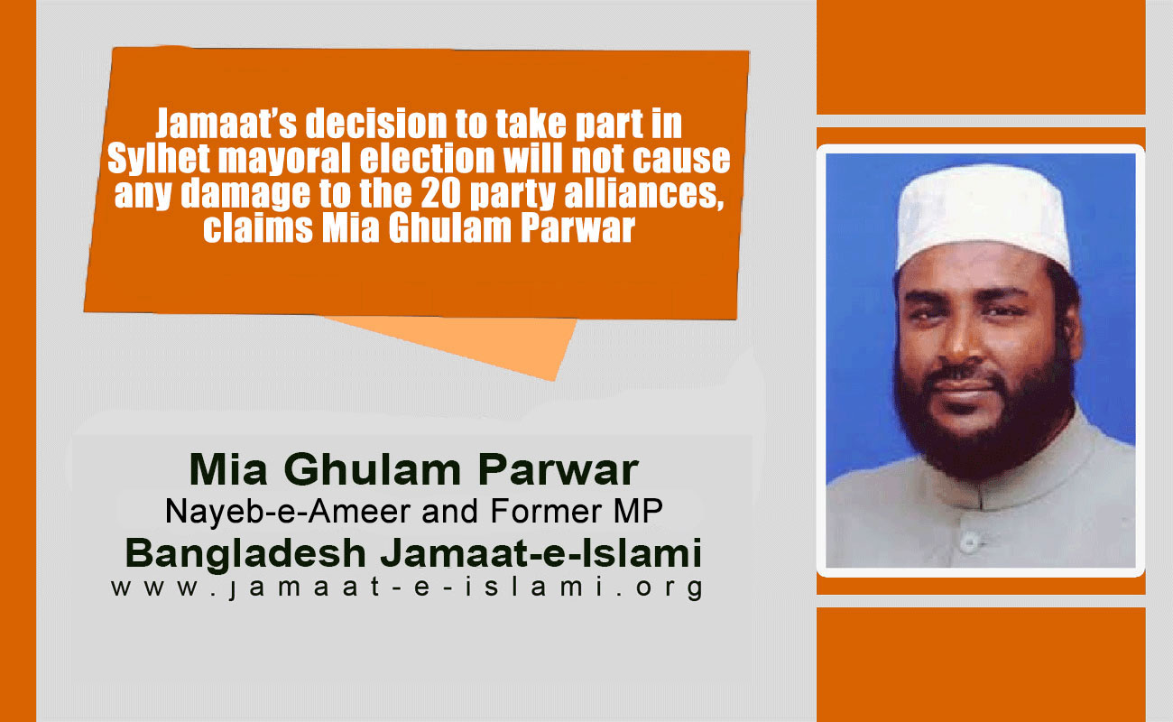 Jamaat’s decision to take part in Sylhet mayoral election will not cause any damage to the 20 party alliances, claims Mia Ghulam Parwar