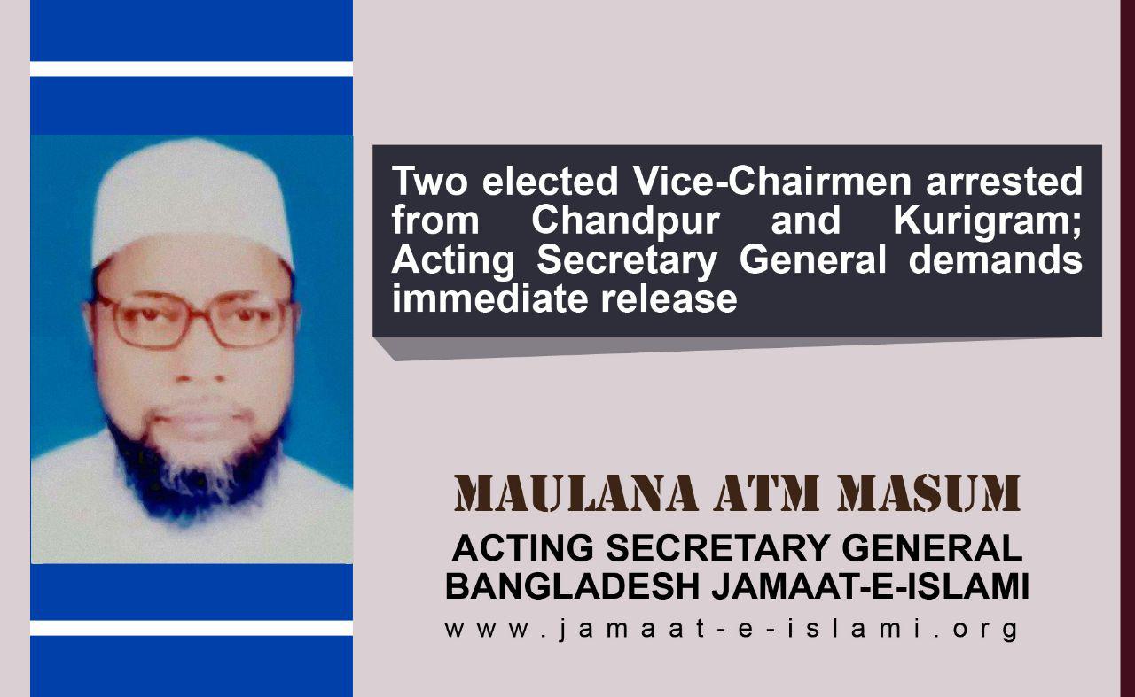 Two elected Vice-Chairmen arrested from Chandpur and Kurigram; Acting Secretary General demands immediate release