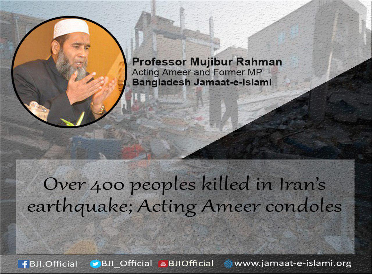 Over 400 peoples killed in Iran’s earthquake; Acting Ameer condoles