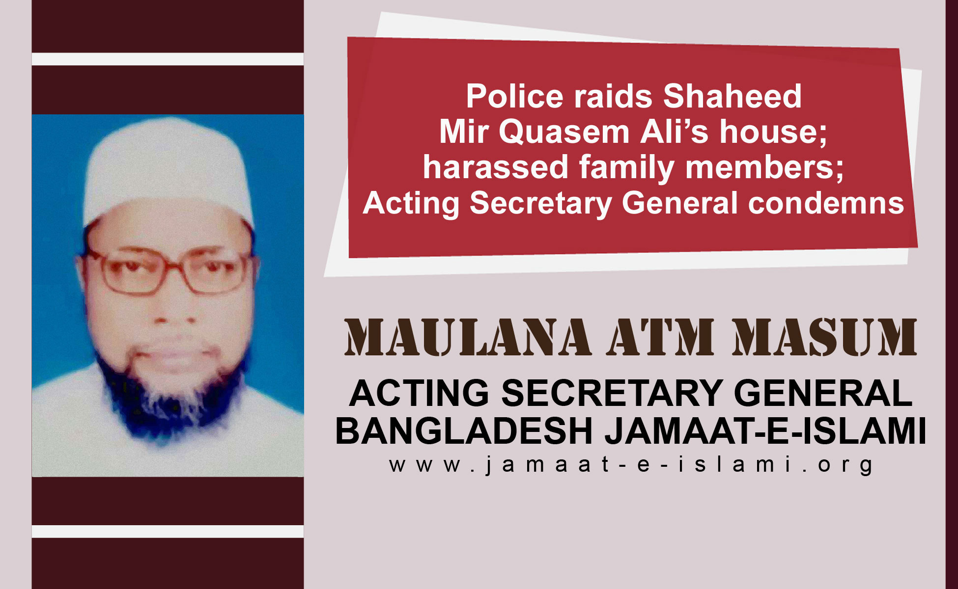 Police raids Shaheed Mir Quasem Ali’s house; harassed family members; Acting Secretary General condemns
