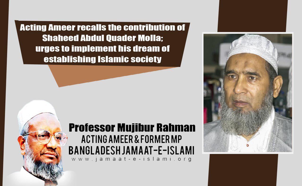 Acting Ameer recalls the contribution of Shaheed Abdul Quader Molla; urges to implement his dream of establishing Islamic society
