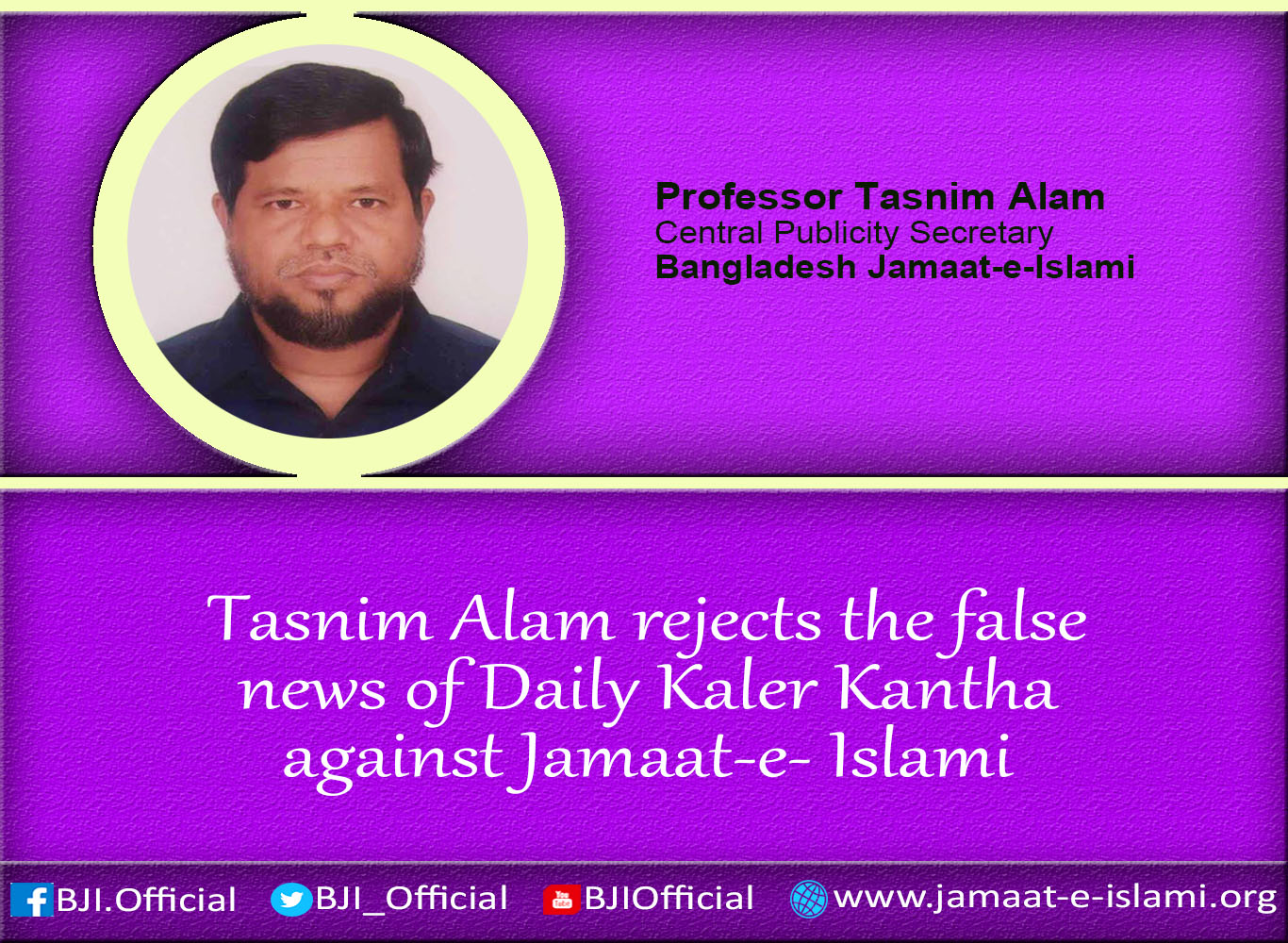 Tasnim Alam rejects the false news of Daily Kaler Kantha against Jamaat-e-Islami