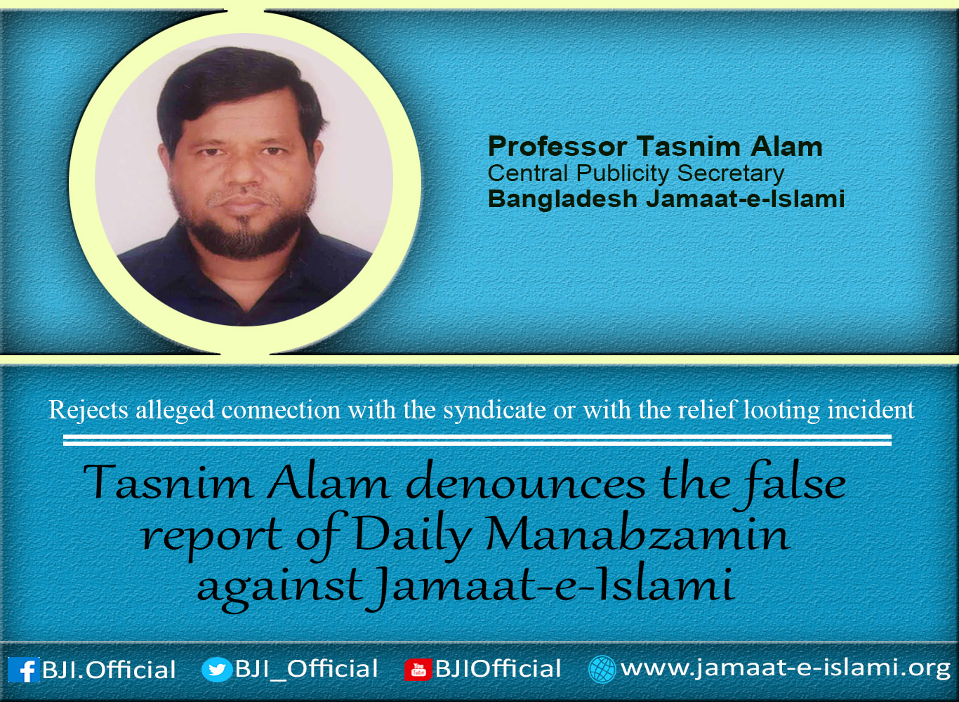 Tasnim Alam denounces the false report of Daily Manabzamin against Jamaat-e-Islami