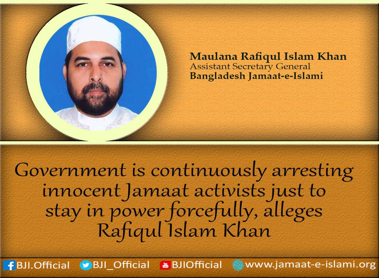 Government is continuously arresting innocent Jamaat activists just to stay in power forcefully, alleges Rafiqul Islam Khan