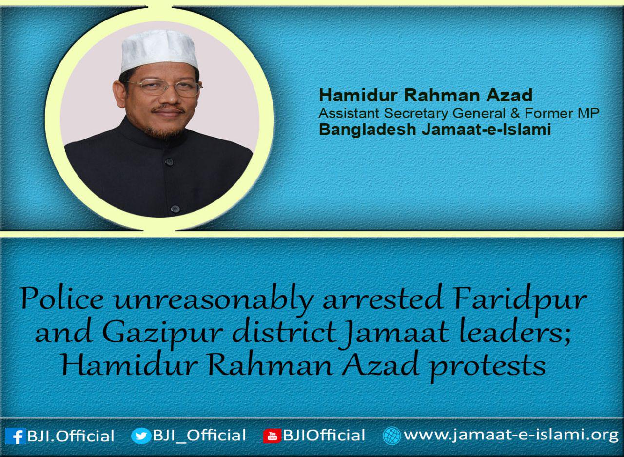Police unreasonably arrested Faridpur and Gazipur district Jamaat leaders; Hamidur Rahman Azad protests