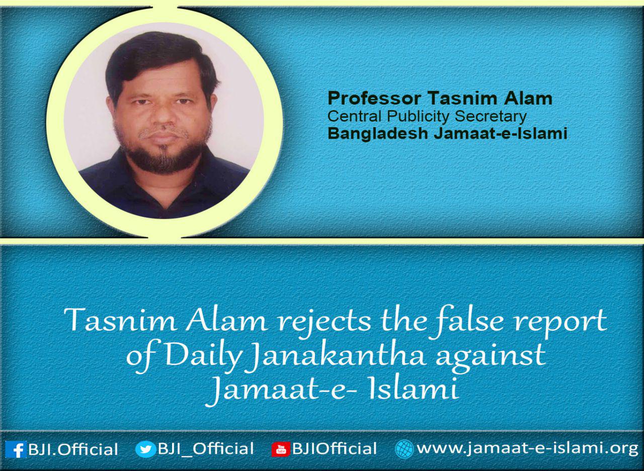 Tasnim Alam rejects the false report of Daily Janakantha against Jamaat-e-Islami