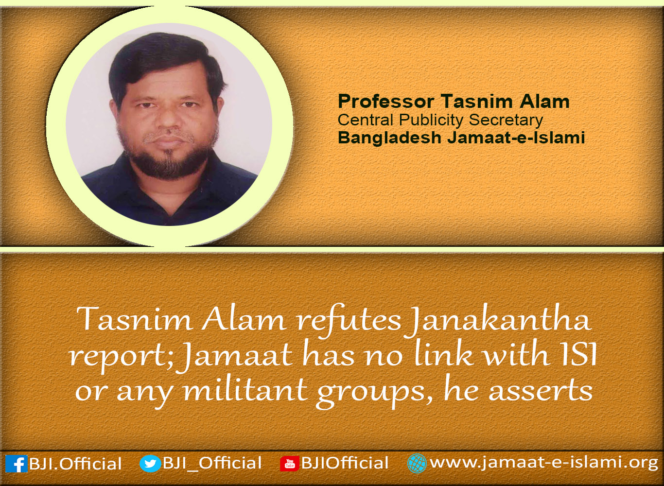 Tasnim Alam refutes Janakantha report; Jamaat has no link with ISI or any militant groups, he asserts