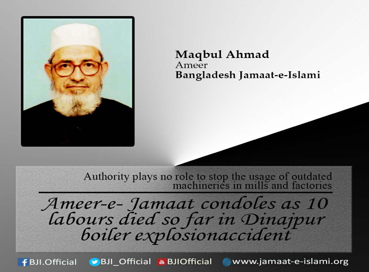 Ameer-e-Jamaat condoles as 10 labours died so far in Dinajpur boiler explosion accident