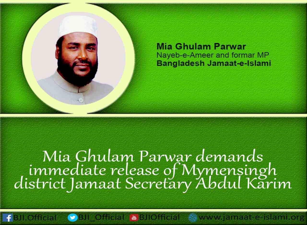 Mia Ghulam Parwar demands immediate release of Mymensingh district Jamaat Secretary Abdul Karim