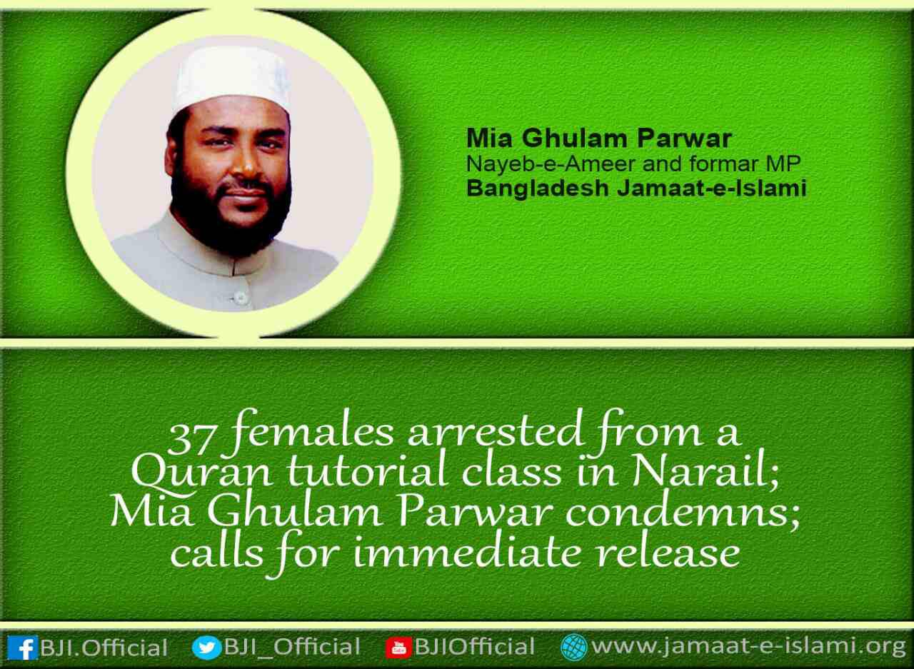 37 females arrested from a Quran tutorial class in Narail; Mia Ghulam Parwar condemns; calls for immediate release