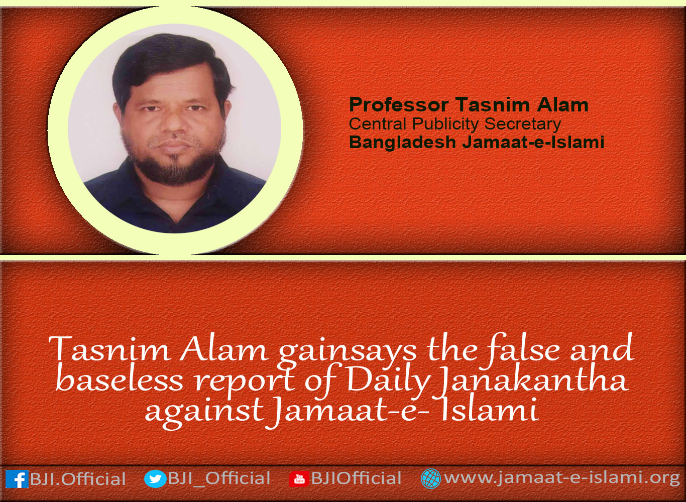 Tasnim Alam gainsays the false and baseless report of Daily Janakantha against Jamaat-e-Islami