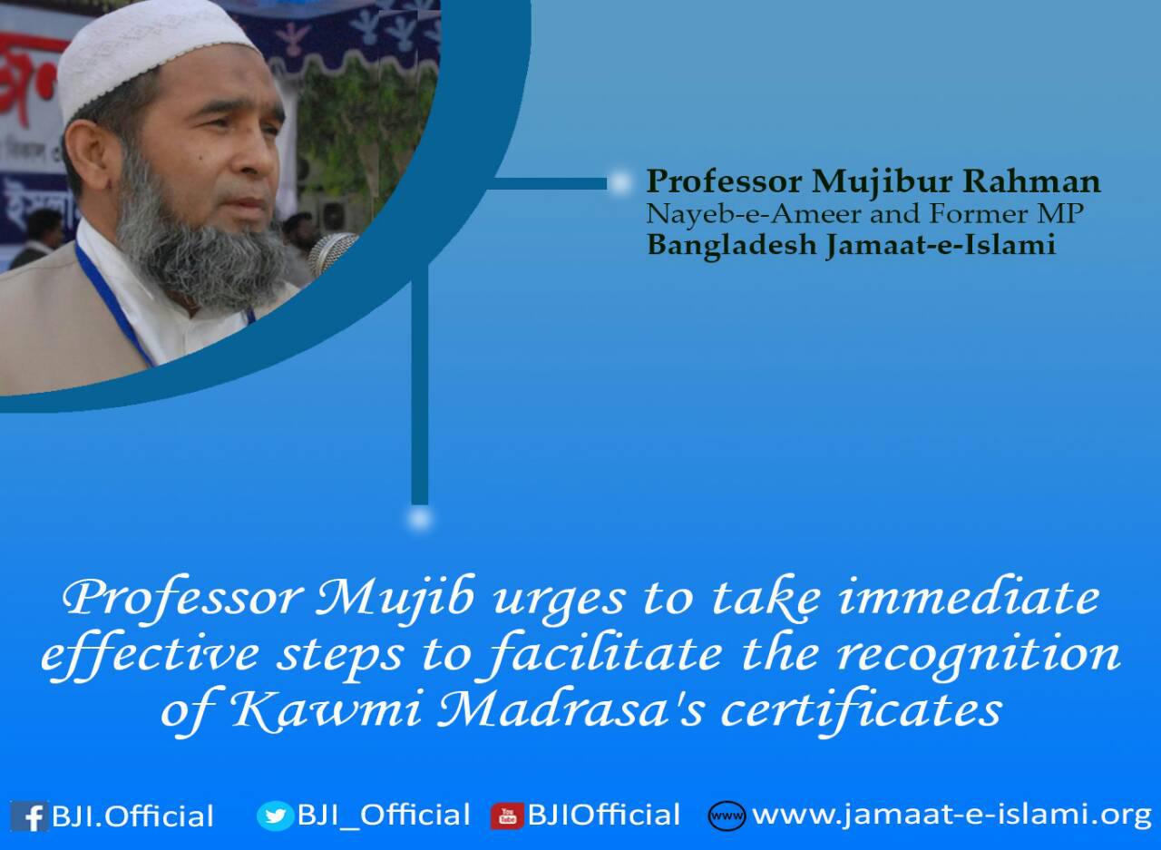 Professor Mujib urges to take immediate effective steps to facilitate the recognition of Kawmi Madrasa’s certificates