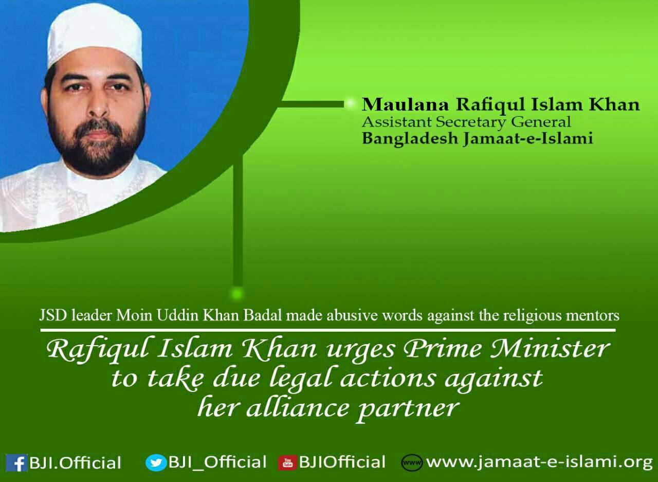 Rafiqul Islam Khan urges Prime Minister to take due legal actions against her alliance partner