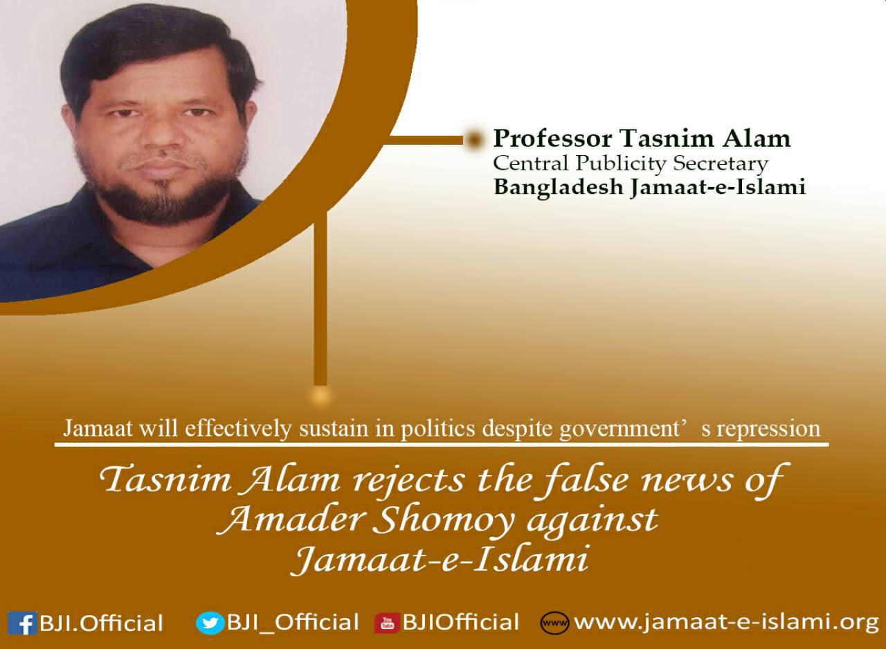 Tasnim Alam rejects the false news of Amader Shomoy against Jamaat-e-Islami