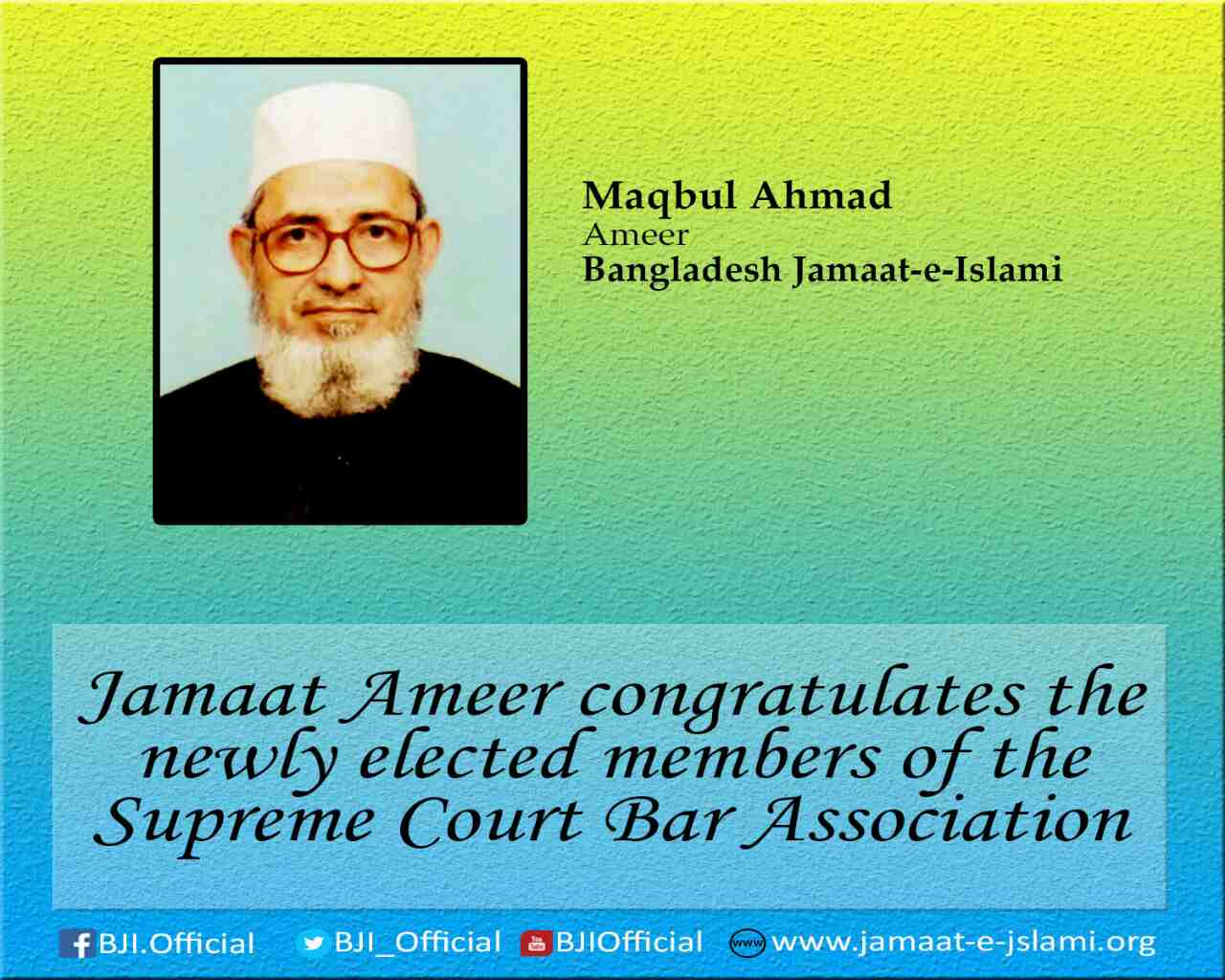 Jamaat Ameer congratulates the newly elected members of the Supreme Court Bar Association