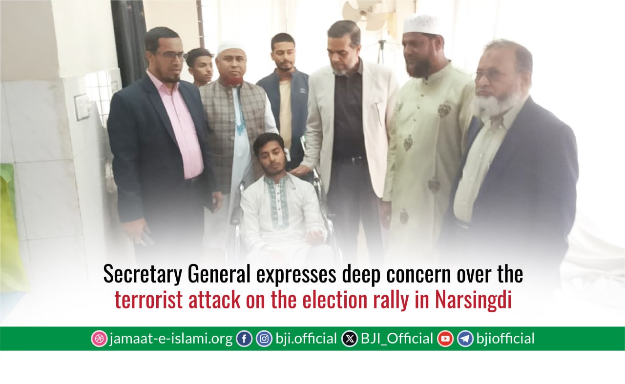Bangladesh Jamaat-e-Islami’s Secretary General and former Member of Parliament Mia Golam Porwar issued a statement today, 4 December, expressing deep concern, strong condemnation, and protest over the terrorist attack on the election rally of Bangladesh Jamaat-e-Islami–nominated candidate for Narsingdi-2 (Palash), Maulana Amjad Hossain.