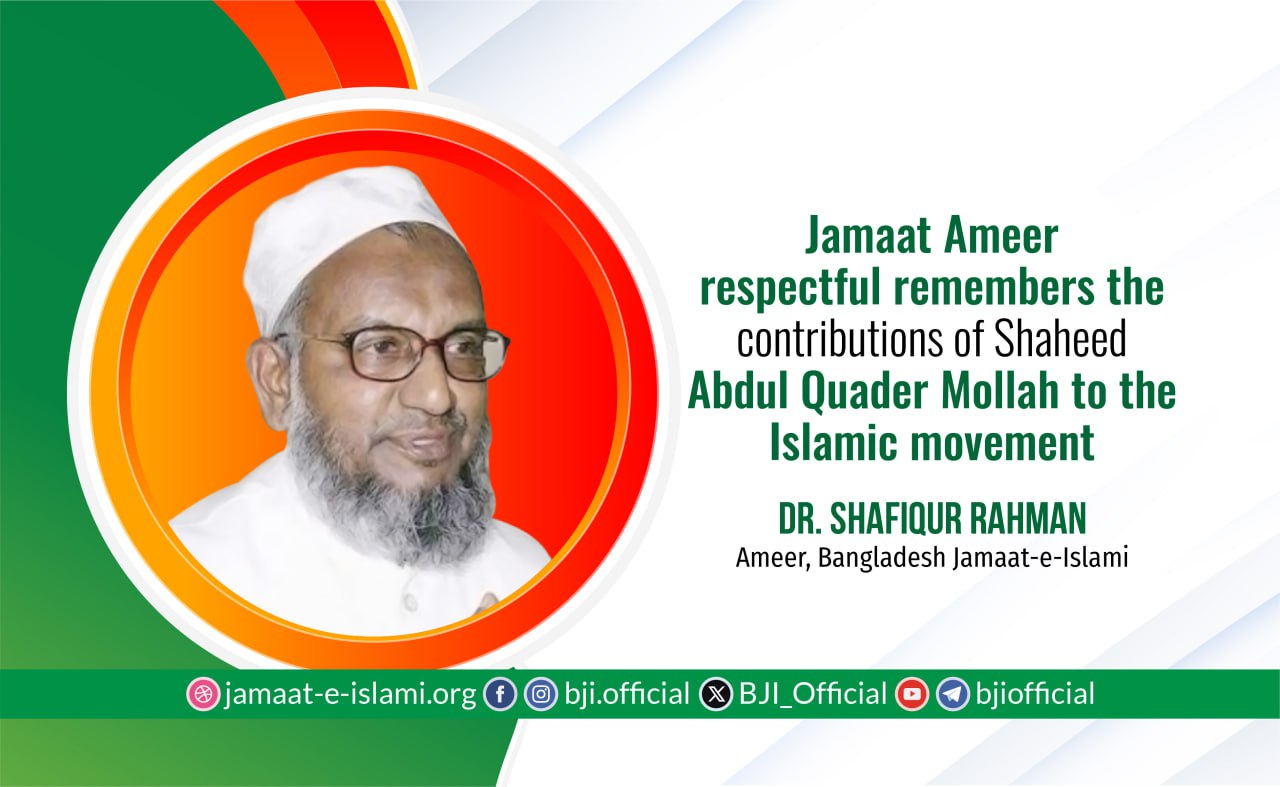 In the statement, he said: “The then Assistant Secretary General of Bangladesh Jamaat-e-Islami, distinguished journalist and intellectual Abdul Quader Molla, played an active role in the struggle to establish an Islamic society in Bangladesh till the final moments of his martyrdom. He was simultaneously a politician, writer, educationist, and researcher, and he made significant contributions to the development of the country and the nation. In the anti-autocracy movement of the 1990s, he served as a member of the liaison committee. He played a courageous role in the movement to establish democracy, the rule of law, justice, and the legitimate rights of the people. As a pen soldier, he used his writings to awaken the conscience of the people.
