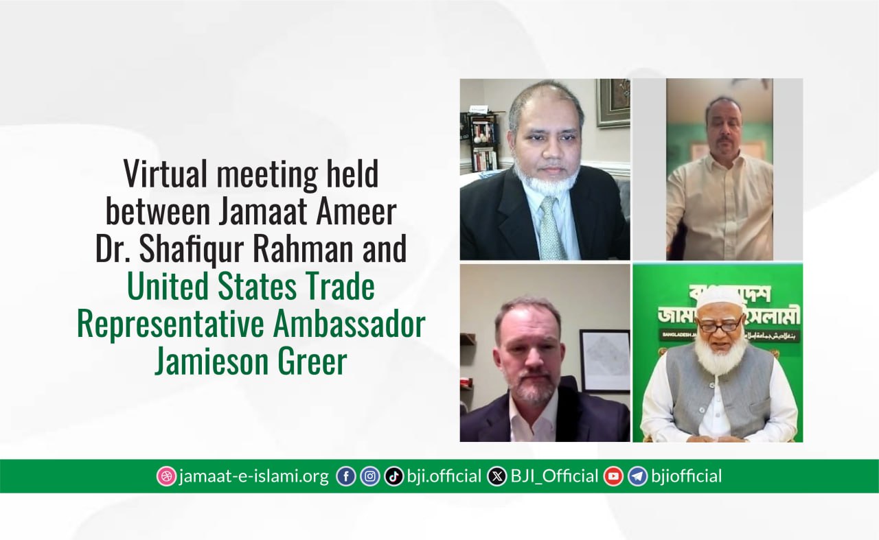 Bangladesh Jamaat-e-Islami's Ameer Dr. Shafiqur Rahman held a virtual meeting with United States Trade Representative (USTR) Ambassador Jamieson Greer. During the meeting, detailed discussions were held on bilateral trade between Bangladesh and the United States, reciprocal tariff rates, and future economic cooperation.