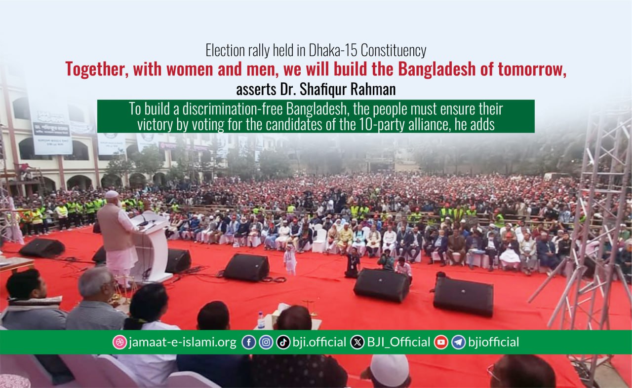 Bangladesh Jamaat-e-Islami’s Ameer Dr. Shafiqur Rahman said, “Together—women and men—we will build the Bangladesh of tomorrow.” Issuing a stern warning, he said, “We can tolerate many things, but we will not tolerate any assault on the honor of our mothers and sisters. No form of violence against women will be allowed.” He said that once justice (insaf) is established in society, corruption, extortion, terrorism, murder, rape, bank robbery, and similar crimes will not be able to continue. There will be no discrimination at any level of society. To build a justice-based, discrimination-free Bangladesh, the people must ensure their victory by voting for the candidates of the 10-party alliance.