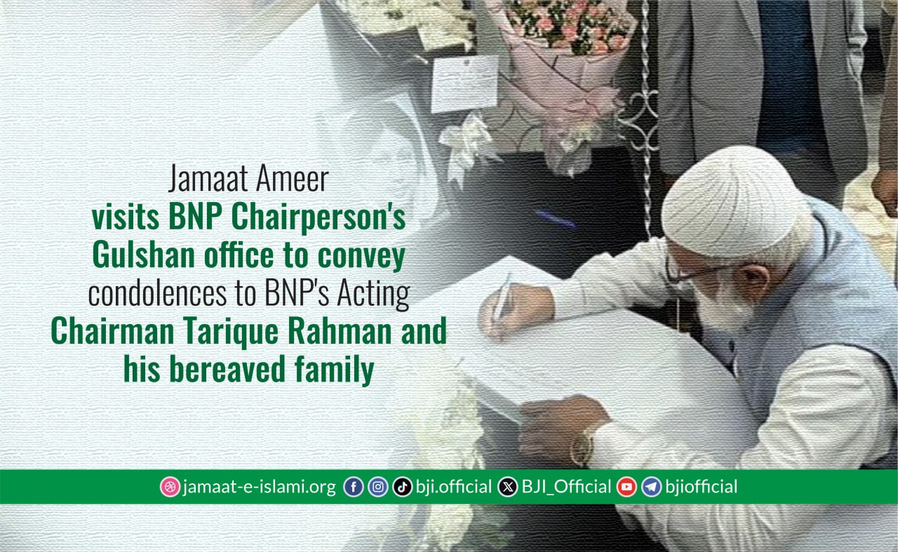 At that time, Jamaat Ameer Dr. Shafiqur Rahman expressed deep sorrow at the demise of BNP Chairperson and former Prime Minister Begum Khaleda Zia and signed the condolence book.