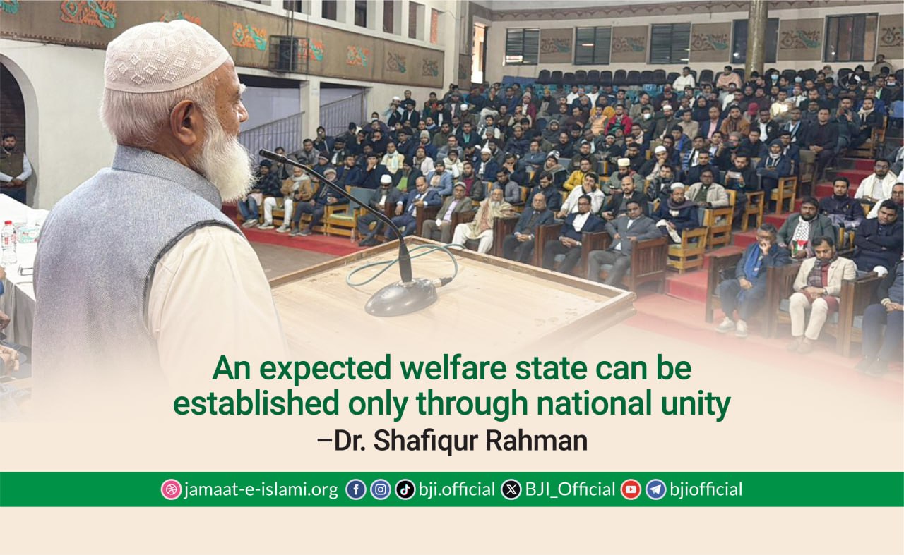 In his speech, the Jamaat Ameer said that in order to establish a country as a welfare state, the nation must remain united. It is never possible to run a state properly and effectively with a divided nation. Everyone must work together to prevent division within the nation.